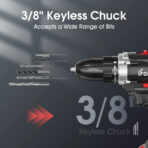 - Quick Accessory Changes: 3/8″ keyless chuck and forward/reverse control allow for effortless bit changes, making it ideal for multiple applications.