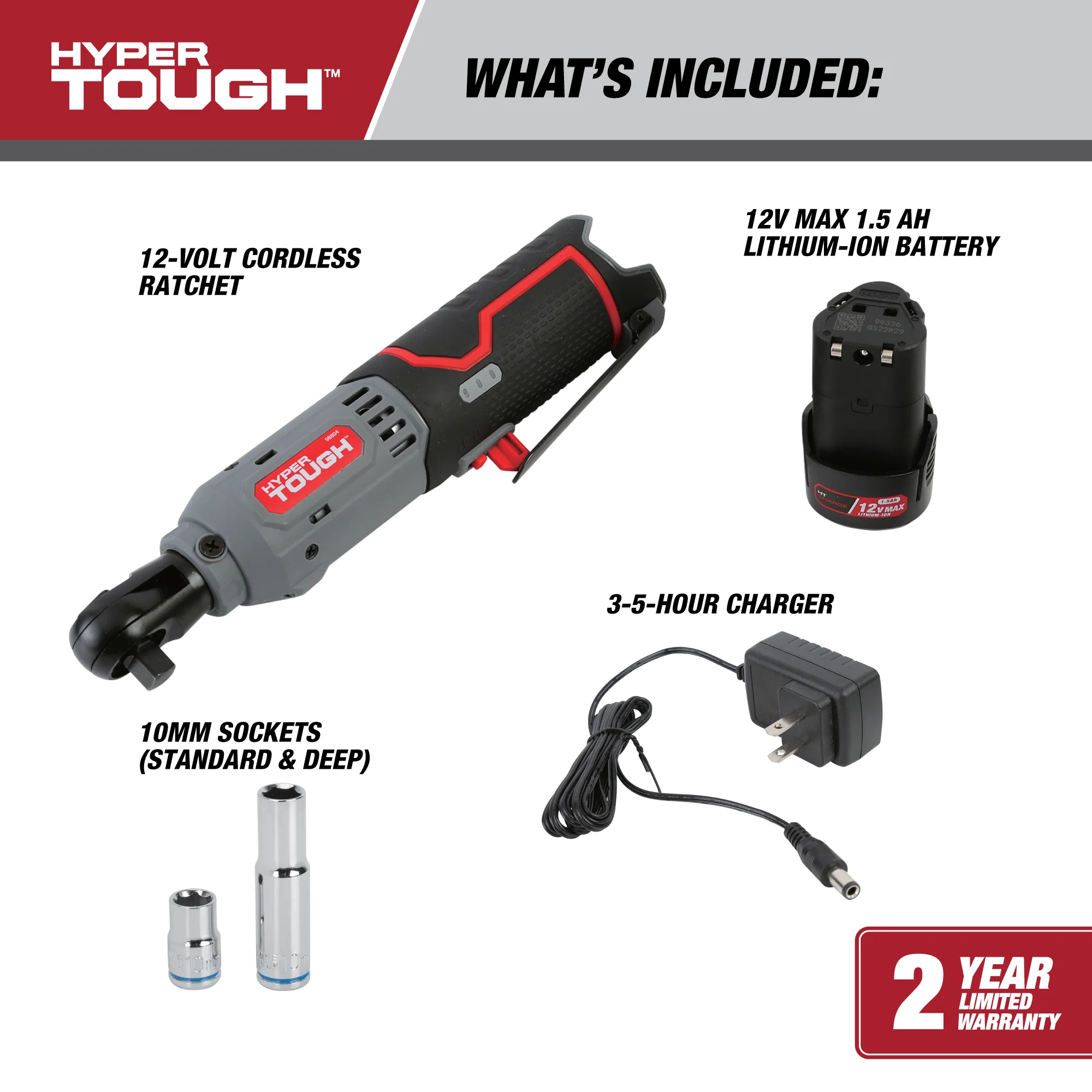 Hyper Tough 12V Max Lithium-Ion Cordless 38-inch Ratchet with 1.5Ah Battery and Charger, 98804, New
